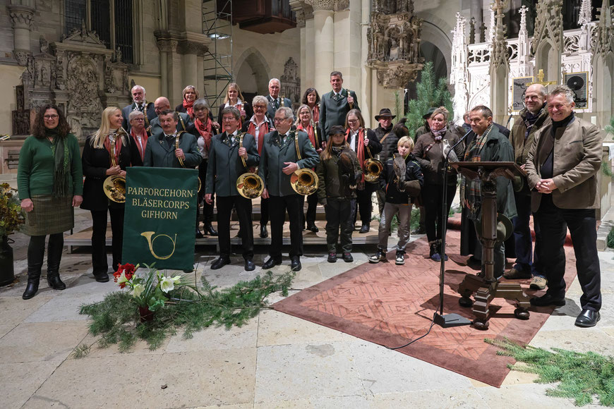 Das gemeinsame Musizieren der ausgewählten Choräle war für den hochqualifizierten Dommusiker so überzeugend, dass er die Parforce-Gruppe aus Gifhorn aufmunternd in seinem niederbayerischen Tonfall fragte: „Habt`s noch oan?“ Der Applaus von mehreren Hundert Konzertbesuchern nach unserer Zugabe sowie die anschließenden Gespräche mit vielen Interessierten zu den eher ungewöhnlichen Musikinstrumenten in Kirchen haben gezeigt, dass die Hornisten als Kulturbotschafter aus Gifhorn im Stephansdom ebenso wie zur Hubertusmesse am Folgetag in Pocking-Hartkirchen mit den befreundeten Bläsern aus Niederbayern und am Schlusstag zur Sonntagsmesse im Stift Reichersberg in Oberösterreich viel Freude und Anerkennung ausgelöst haben. Propst Markus Grasl als amtierender Leiter des seit über 900 Jahren existierenden Klosters betonte in seiner Predigt die Freundschaft und Verbundenheit zu den „Gästen aus Gifhorn in Niedersachsen,die die weite Reise von 700 km auf sich nahmen“ und erwähnte in seinem Dialekt das besondere Musikerlebnis, das bei ihm „Ganslhaut“ ausgelöst habe. „Ein herzliches Vergelt`s Gott“ sowie zwei Kästen Wein aus eigener Winzerei begleiteten die Heimfahrt.
